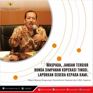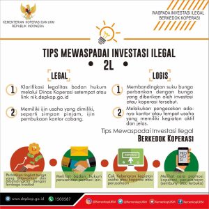 Jakarta – Kementerian Koperasi dan UKM melalui Deputi Bidang Pengawasan melakukan pengawasan ketat terhadap operasional koperasi untuk mencegah praktek pengumpulan dana masyarakat secara ilegal. Maraknya investasi ilegal disebabkan sebagian masyarakat cenderung ingin mendapat uang dengan cepat dan mudah. Selain itu, masyarakat juga dengan mudah tergiur oleh iming-iming bunga investasi yang tinggi.
