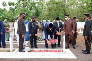 Jelang peringatan HUT ke-76 TNI, ziarah nasional dan tabur bunga di Taman Makam Pahlawan (TMP) digelar di berbagai daerah di Indonesia. Di Kota Cirebon, ziarah nasional dan tabur bunga dilakukan di TMP Kesenden, Senin (4/10/2021). Sebelum ziarah dan tabur bunga, terlebih dahulu digelar upacara yang dipimpin oleh Kepala Staf Korem (Kasrem) 063/SGJ, Letkol (Inf) Heri Rustanto.